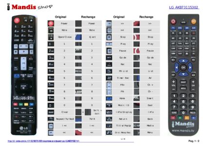 Un document est inclus pour vous aider à utiliser facilement la nouvelle télécommande, en indiquant la correspondance des boutons.