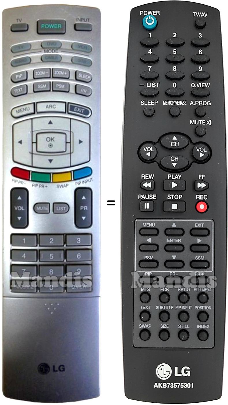 Télécommandes équivalentes qui remplacent la télécommande LG AKB73575301 et possèdent exactement les mêmes fonctions :