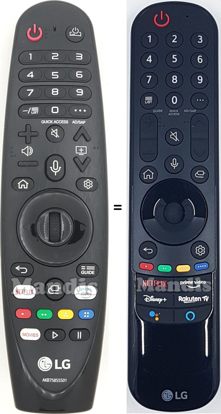 Télécommandes équivalentes qui remplacent la télécommande LG MR21GA (AKB76039701) et possèdent exactement les mêmes fonctions :