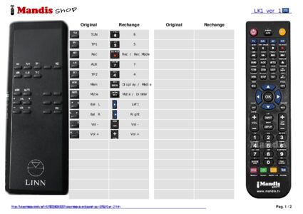 Cette télécommande remplace la plupart des fonctions de votre LK1 (ver. 1). Il ne s'agit pas d'une télécommande universelle, mais d'une copie avec la plupart des touches et des fonctions de votre télécommande d'origine.