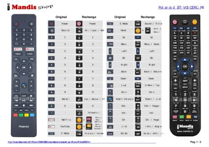 Je viens de recevoir la télécommande, très rapide et sérieux. Elle est conforme à la description, même si ce n´est pas la même que l´origine, je n´ai aucun problèmes pour la TV. Très contente car j´ai commandé sur d'autres sites et impossible de faire fonctionner la télécommande. Je recommande franchement MANDIS SHOP.