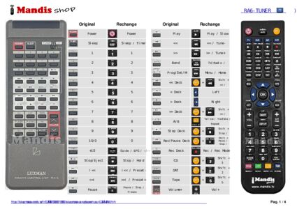 Un document est inclus pour vous aider à utiliser facilement la nouvelle télécommande, en indiquant la correspondance des boutons.