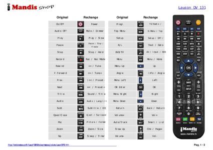 Un document est inclus pour vous aider à utiliser facilement la nouvelle télécommande, en indiquant la correspondance des boutons.