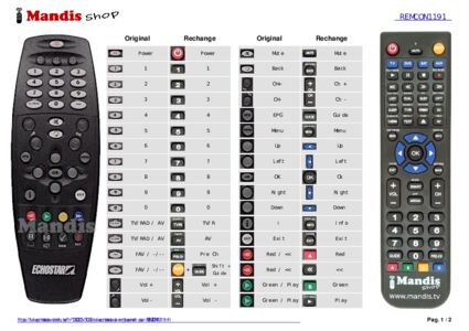 Cette télécommande remplace la plupart des fonctions de votre REMCON1191. Il ne s'agit pas d'une télécommande universelle, mais d'une copie avec la plupart des touches et des fonctions de votre télécommande d'origine.