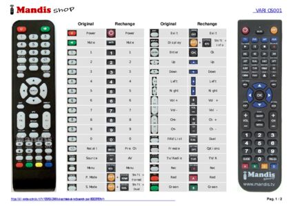 Un document est inclus pour vous aider à utiliser facilement la nouvelle télécommande, en indiquant la correspondance des boutons.