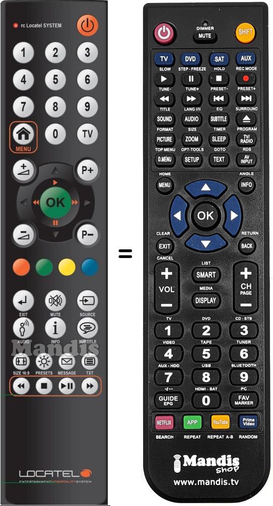 Télécommande qui remplace celle d'origine car elle possède les mêmes fonctions.