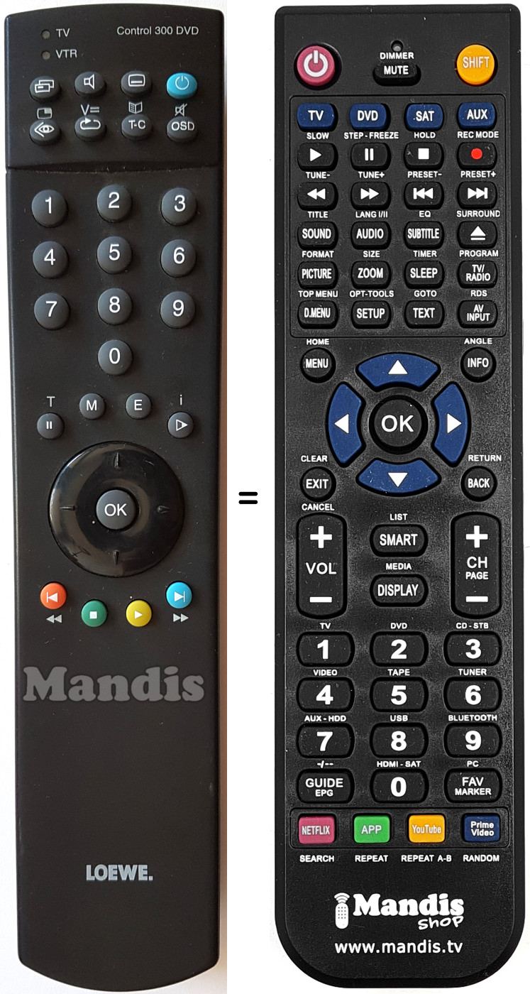 Télécommande qui remplace celle d'origine car elle possède les mêmes fonctions.