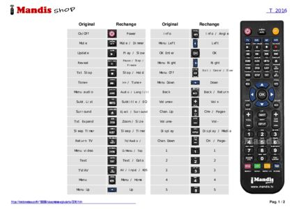 Un document est inclus pour vous aider à utiliser facilement la nouvelle télécommande, en indiquant la correspondance des boutons.