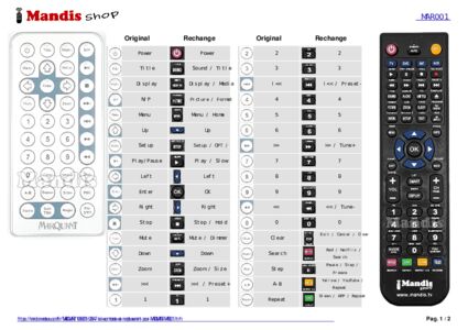 Cette télécommande remplace entièrement votre MAR001 et offre toutes les fonctions de l'originale.