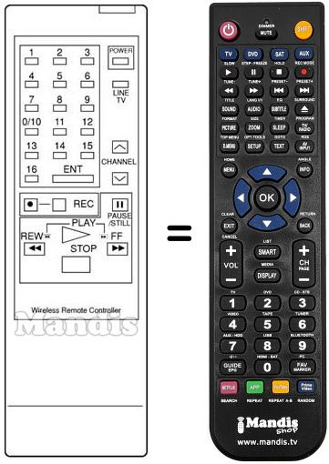 Télécommande qui remplace celle d'origine car elle possède les mêmes fonctions.