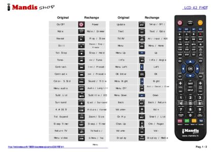 Un document est inclus pour vous aider à utiliser facilement la nouvelle télécommande, en indiquant la correspondance des boutons.