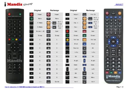 Un document est inclus pour vous aider à utiliser facilement la nouvelle télécommande, en indiquant la correspondance des boutons.
