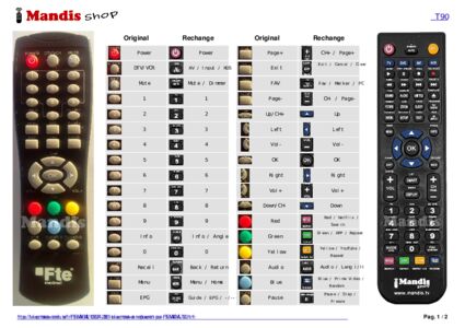 Un document est inclus pour vous aider à utiliser facilement la nouvelle télécommande, en indiquant la correspondance des boutons.