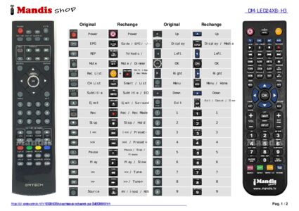 Un document est inclus pour vous aider à utiliser facilement la nouvelle télécommande, en indiquant la correspondance des boutons.
