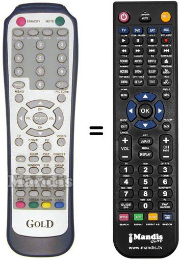 Télécommande qui remplace celle d'origine car elle possède les mêmes fonctions.