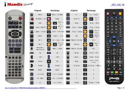 Un document est inclus pour vous aider à utiliser facilement la nouvelle télécommande, en indiquant la correspondance des boutons.