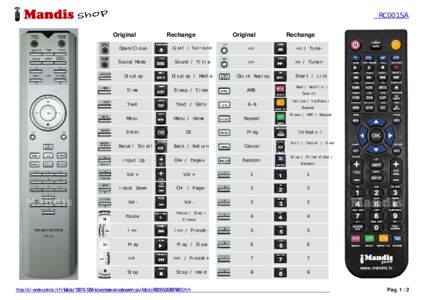 Un document est inclus pour vous aider à utiliser facilement la nouvelle télécommande, en indiquant la correspondance des boutons.