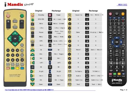 Un document est inclus pour vous aider à utiliser facilement la nouvelle télécommande, en indiquant la correspondance des boutons.