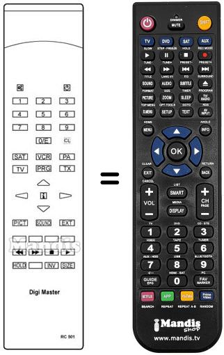 Télécommande qui remplace celle d'origine car elle possède les mêmes fonctions. Il ne s'agit pas d'une télécommande universelle mais d'une télécommande qui remplace celle d'origine. Vous recevrez la télécommande prête à fonctionner, vous n'aurez qu'à mettre les piles. Il n'est pas nécessaire de la programmer. Nous vous garantissons que la télécommande aura exactement les mêmes fonctions que celle d'origine.