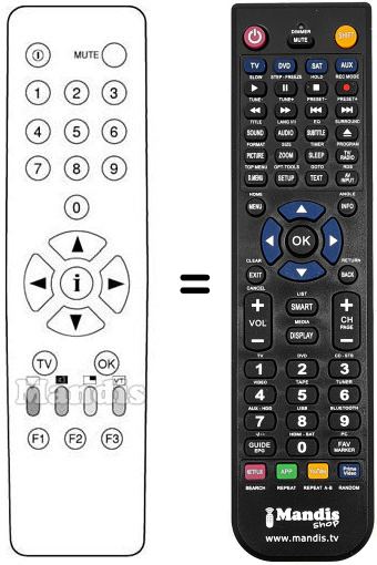 Télécommande qui remplace celle d'origine car elle possède les mêmes fonctions. Il ne s'agit pas d'une télécommande universelle mais d'une télécommande qui remplace celle d'origine. Vous recevrez la télécommande prête à fonctionner, vous n'aurez qu'à mettre les piles. Il n'est pas nécessaire de la programmer. Nous vous garantissons que la télécommande aura exactement les mêmes fonctions que celle d'origine.