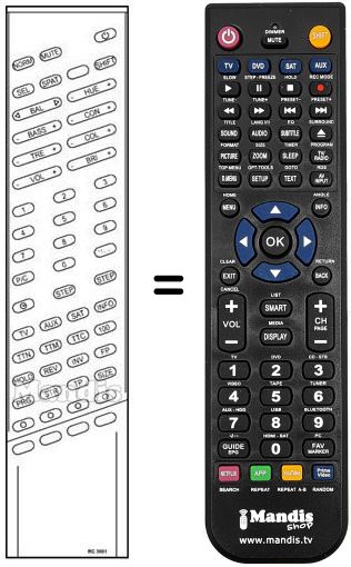 Télécommande qui remplace celle d'origine car elle possède les mêmes fonctions. Il ne s'agit pas d'une télécommande universelle mais d'une télécommande qui remplace celle d'origine. Vous recevrez la télécommande prête à fonctionner, vous n'aurez qu'à mettre les piles. Il n'est pas nécessaire de la programmer. Nous vous garantissons que la télécommande aura exactement les mêmes fonctions que celle d'origine.