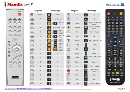 Cette télécommande remplit toutes les fonctions de la télécommande d'origine: Power, TV, AV, R, F1, F2, F3, 1, 2, 3, 4, 5, 6, 7, 8, 9, 0, Blue, Yellow, White, Green, Red, Up / P+, Down / P-, Right, Left, OK, Vol+, Vol-, Info, Pause, Mute, Text, Menu