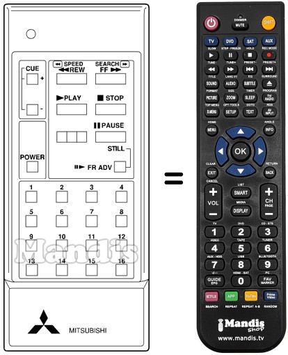 Télécommande qui remplace celle d'origine car elle possède les mêmes fonctions.