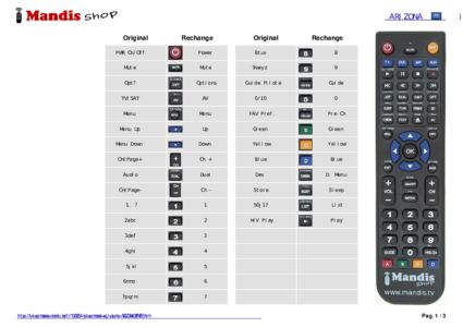Un document est inclus pour vous aider à utiliser facilement la nouvelle télécommande, en indiquant la correspondance des boutons.