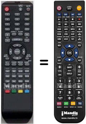 Télécommande qui remplace la télécommande d'origine LCD1920DVX car elle possède les mêmes fonctions.