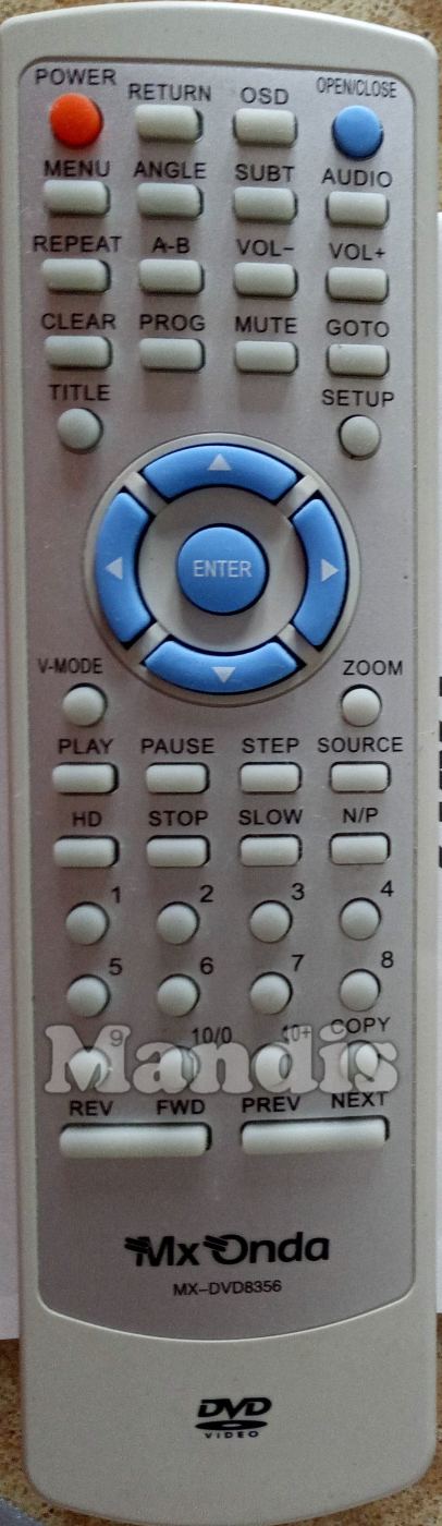 Télécommandes équivalentes qui remplacent la télécommande MXONDA MX-DVD8356 et possèdent exactement les mêmes fonctions :