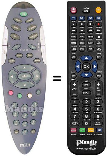 Télécommande qui remplace celle d'origine car elle possède les mêmes fonctions.