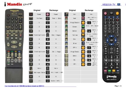 Un document est inclus pour vous aider à utiliser facilement la nouvelle télécommande, en indiquant la correspondance des boutons.