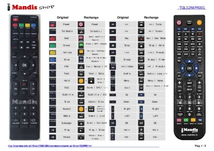 Un document est inclus pour vous aider à utiliser facilement la nouvelle télécommande, en indiquant la correspondance des boutons.