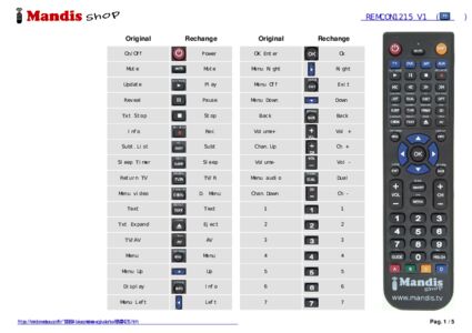 Un document est inclus pour vous aider à utiliser facilement la nouvelle télécommande, en indiquant la correspondance des boutons.