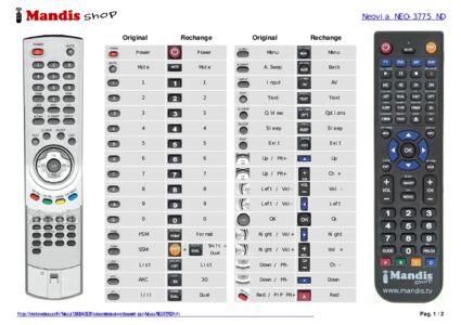 Un document est inclus pour vous aider à utiliser facilement la nouvelle télécommande, en indiquant la correspondance des boutons.