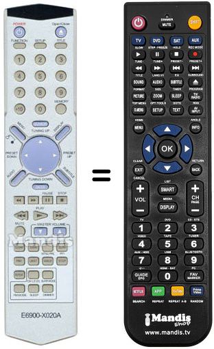Télécommande qui remplace celle d'origine car elle possède les mêmes fonctions.