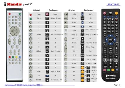 Un document est inclus pour vous aider à utiliser facilement la nouvelle télécommande, en indiquant la correspondance des boutons.