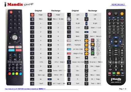 Un document est inclus pour vous aider à utiliser facilement la nouvelle télécommande, en indiquant la correspondance des boutons.