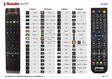 Un document est inclus pour vous aider à utiliser facilement la nouvelle télécommande, en indiquant la correspondance des boutons.