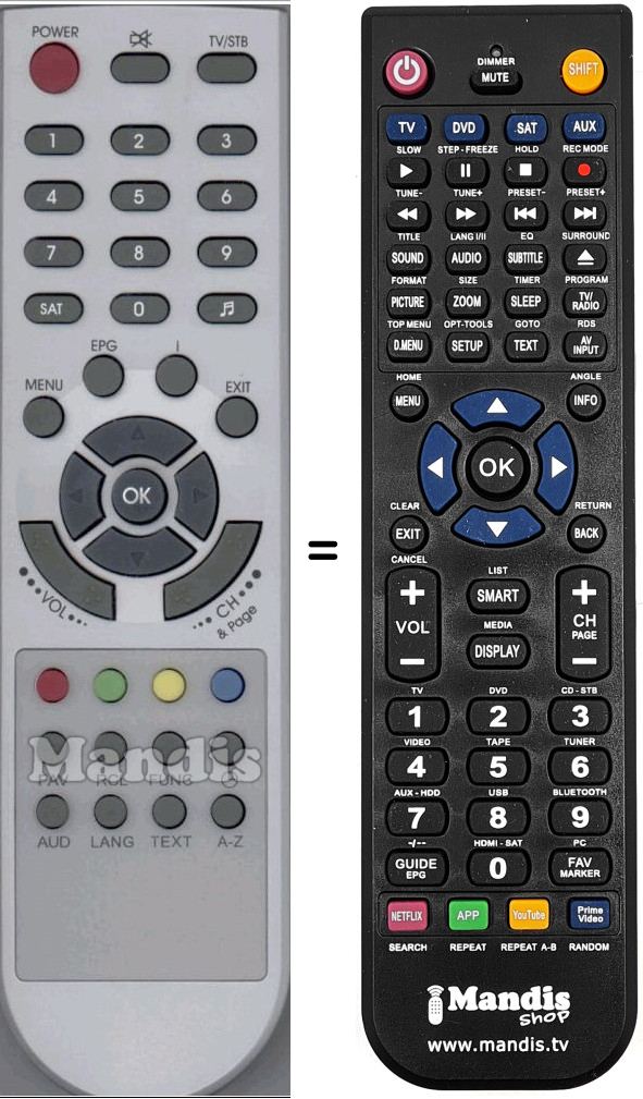 Il ne s'agit pas d'une télécommande universelle mais d'une télécommande qui remplace celle d'origine.