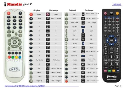 Cette télécommande remplace entièrement votre NPG005 et offre toutes les fonctions de l'originale.
