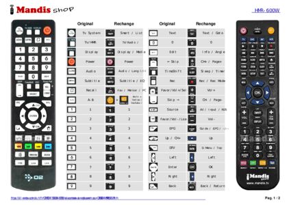 Un document est inclus pour vous aider à utiliser facilement la nouvelle télécommande, en indiquant la correspondance des boutons.