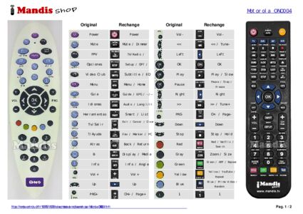 Un document est inclus pour vous aider à utiliser facilement la nouvelle télécommande, en indiquant la correspondance des boutons.