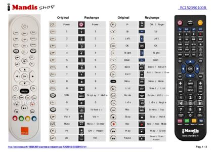 Un document est inclus pour vous aider à utiliser facilement la nouvelle télécommande, en indiquant la correspondance des boutons.