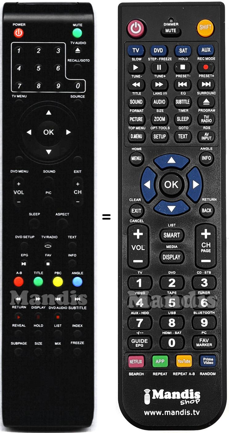 Télécommande qui remplace celle d'origine car elle possède les mêmes fonctions.