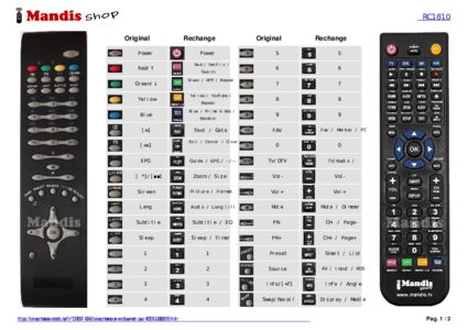Un document est inclus pour vous aider à utiliser facilement la nouvelle télécommande, en indiquant la correspondance des boutons.