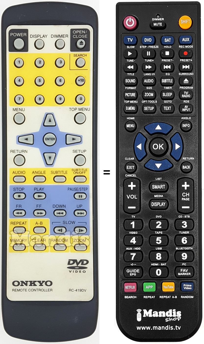 Télécommande qui remplace celle d'origine car elle possède les mêmes fonctions.