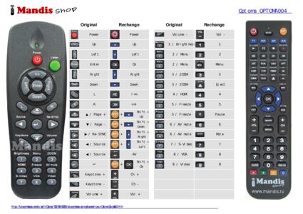 Accueil > Marques > Télécommandes Optoma > Télécommande pour OPTOMA ES520