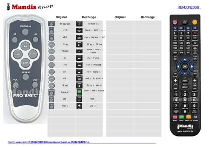 Un document est inclus pour vous aider à utiliser facilement la nouvelle télécommande, en indiquant la correspondance des boutons.