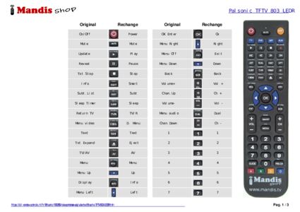 Un document est inclus pour vous aider à utiliser facilement la nouvelle télécommande, en indiquant la correspondance des boutons.